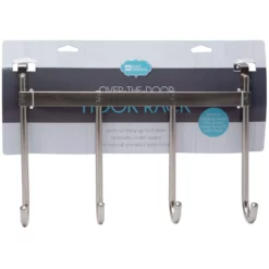 5-Hook Black Chevron Bombay Diamond With Bamboo Wooden Basket Over The Door Hanger