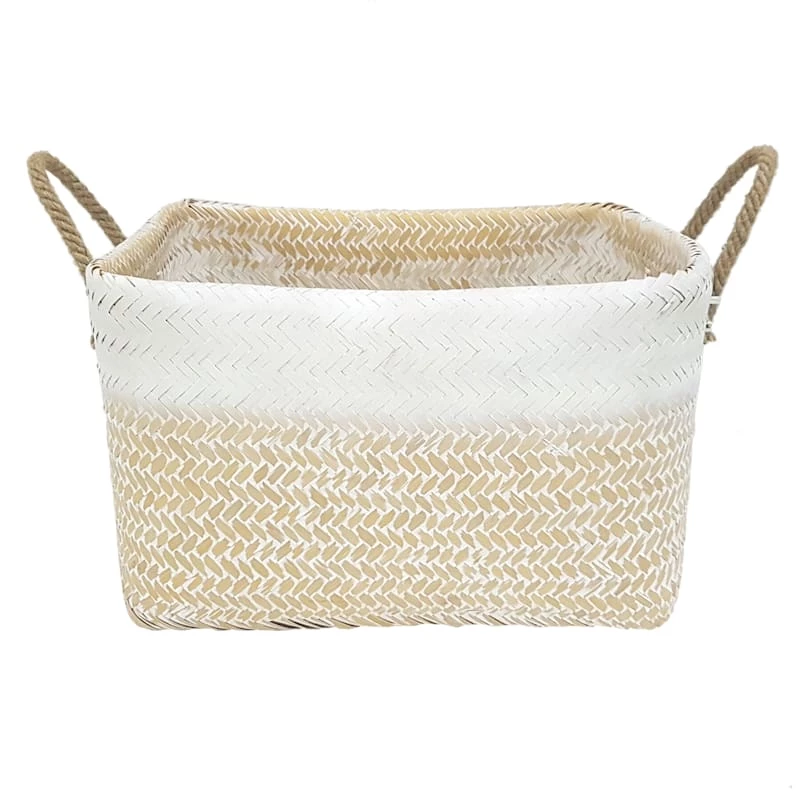 Double Bamboo Rectangle Clear Black Natural/White Large Basket