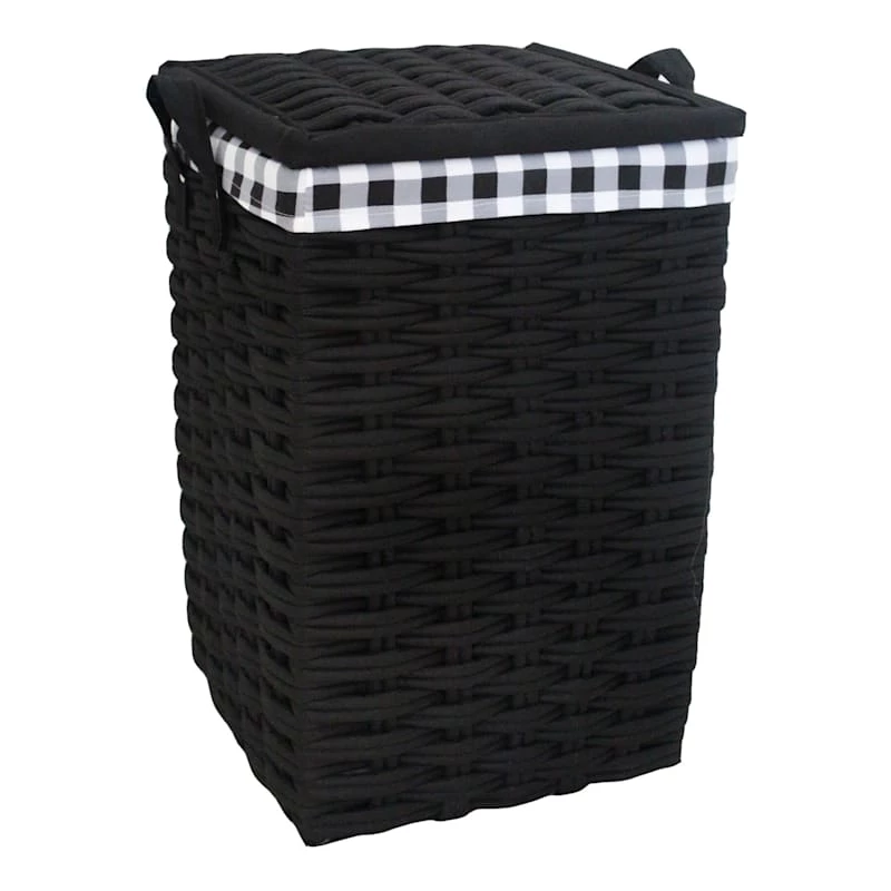 Floor Standing Hamper With Printed Buffalo Check Designed Liner, Large