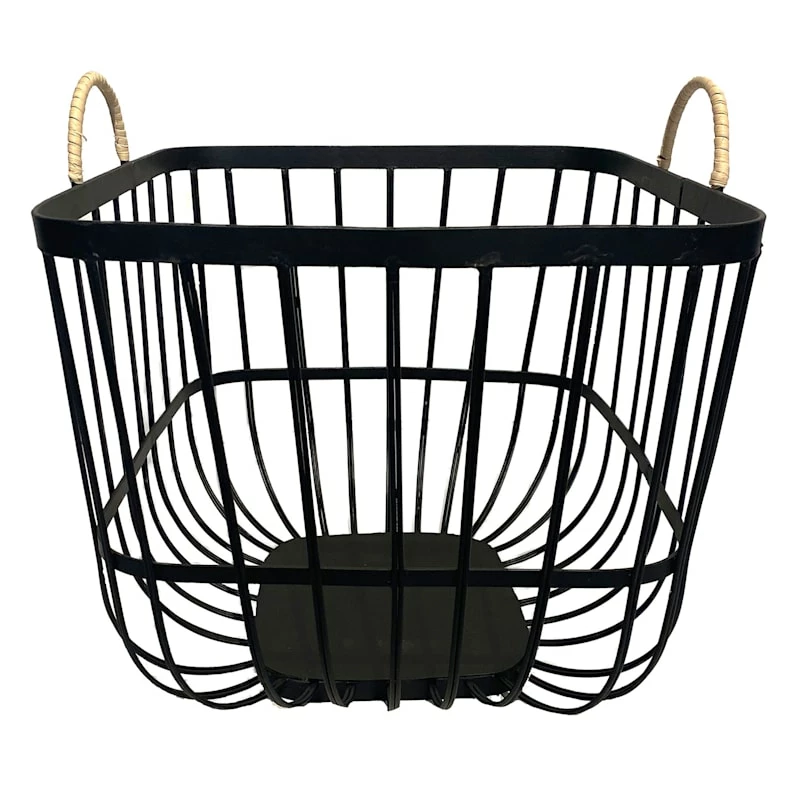 Square Black Metal Storage Basket With Handles, Large